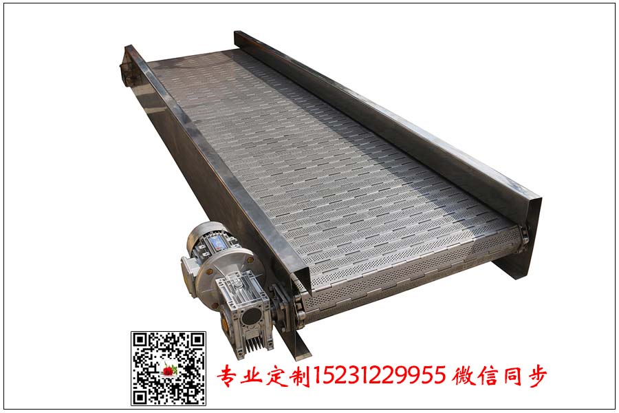 6、把不銹鋼輸送帶安裝到金屬輸送機,在調整傳動裝置的距,用張力丈量儀測試輸送網帶到合適的張力為止;在擰緊馬達的所有螺栓 ,在擰緊的情況下,可能會導致不銹鋼輸送機的機能不佳。